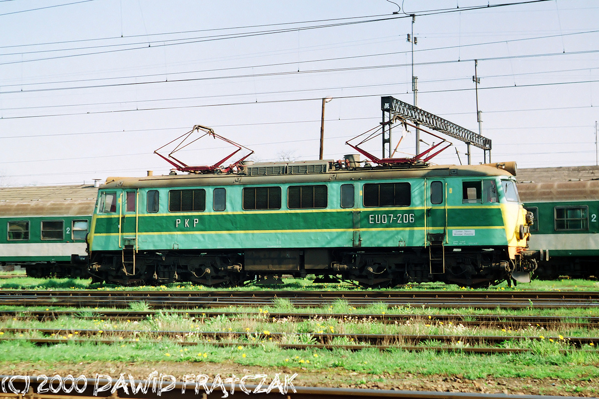 EU07-206 oczekuje w Jeleniej Górze na pociąg powrotny do Wrocławia (24.04.2000)