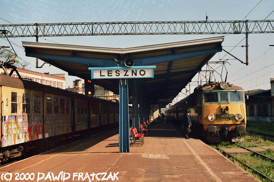 EU07-230 z pociągiem osobowym 76932 z Poznania do Wrocławia na postoju w Lesznie (02.05.2000)