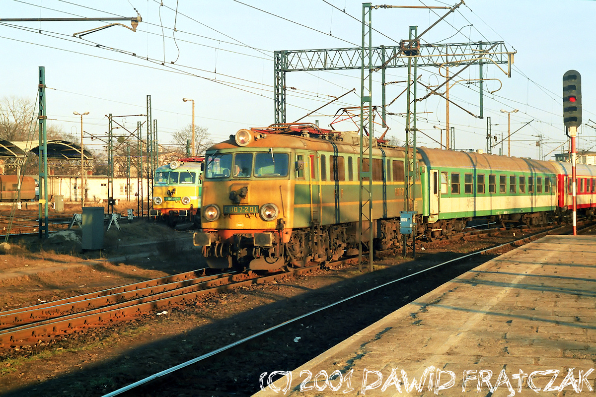 EU07-201 wjeżdża do Wrocławia Gł. z pociągiem osobowym 320 z Kłodzka Gł. (11.02.2001)
