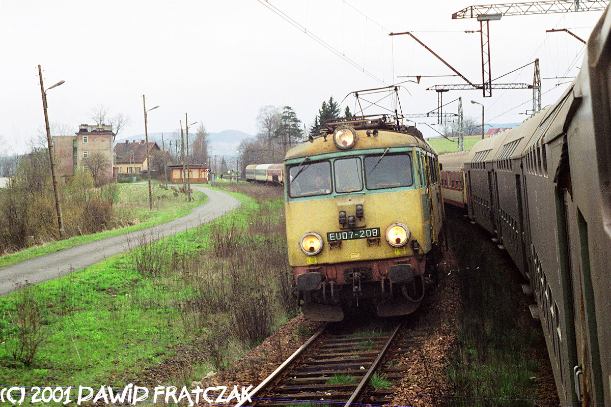 EU07-208 w Ciechanowicach, z osobowym 217 do Jeleniej Góry (28.04.2001)