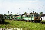 EU07-207 odstawiona na torach postojowych niedaleko lokomotywowni we Wrocławiu Głównym, za nią między innymi EP08-001 (30.05.2000)