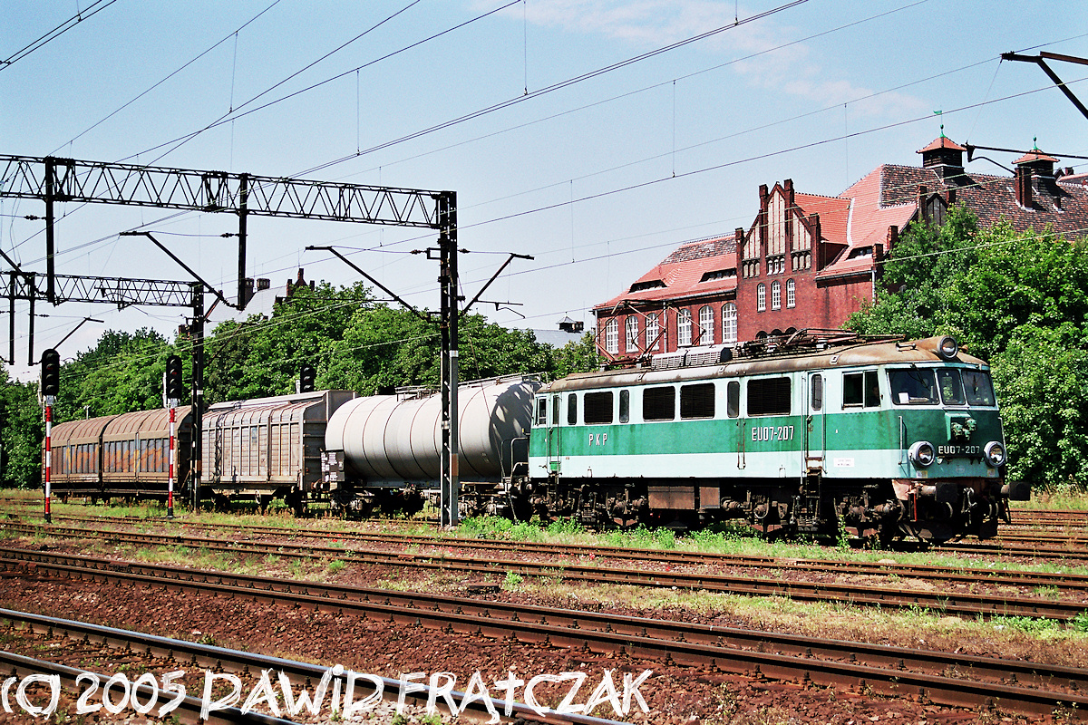 EU07-207 wjeżdża do Wrocławia Nadodrza z pociągiem zdawczym z Brochowa (07.07.2005) |