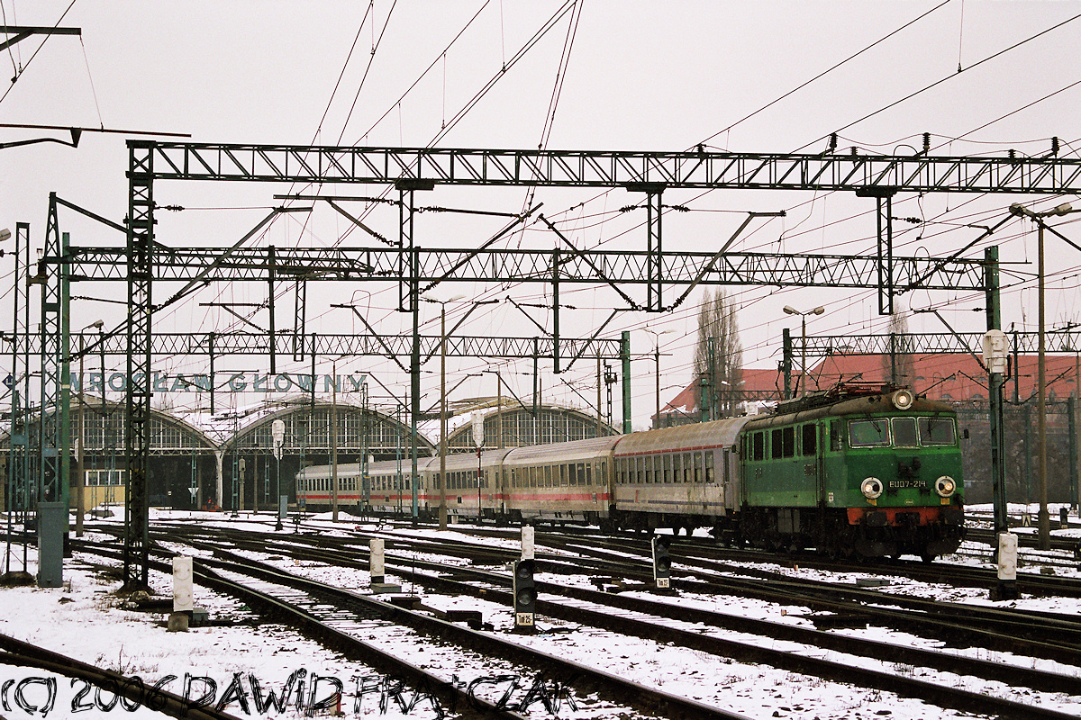 EU07-214 opuszcza Wrocław Główny z pociągiem IC 37001 "Wawel" z Krakowa do Hamburga (12.03.2006) |