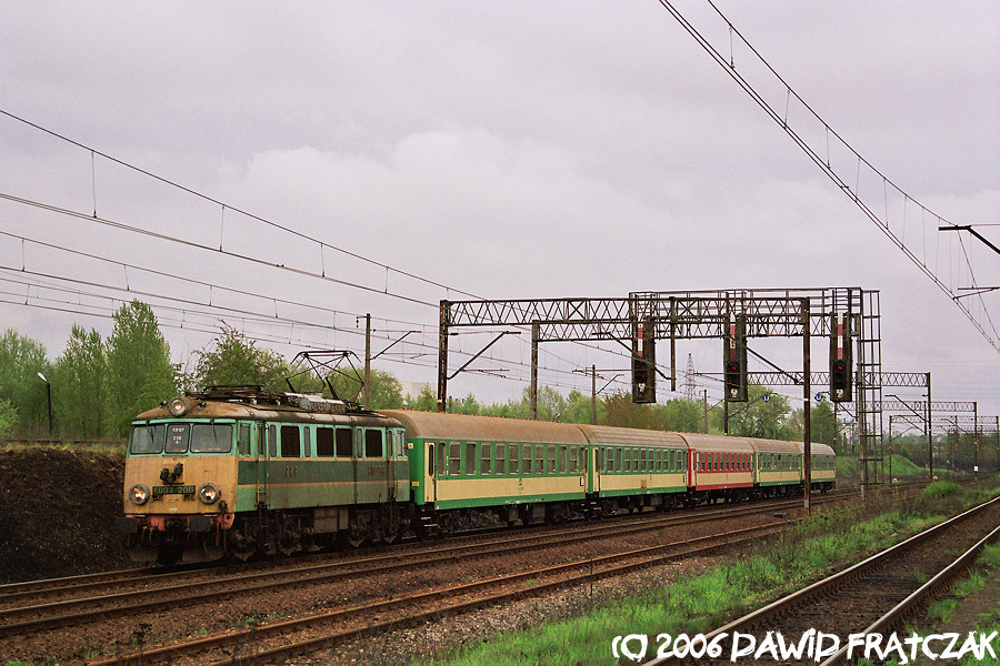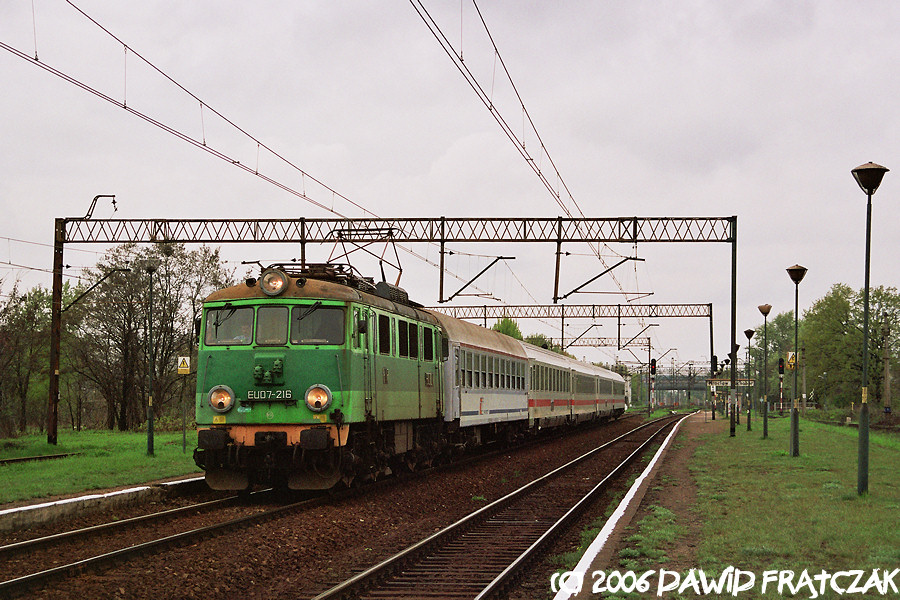 EU07-216 mija Wrocław Muchobór prowadząc pociąg "Wawel" do Krakowa (01.05.2006)