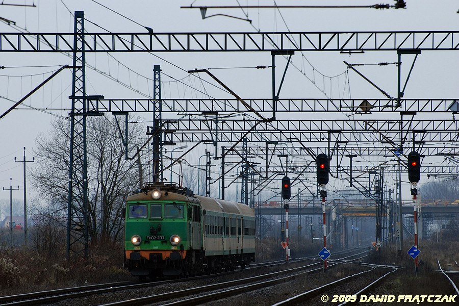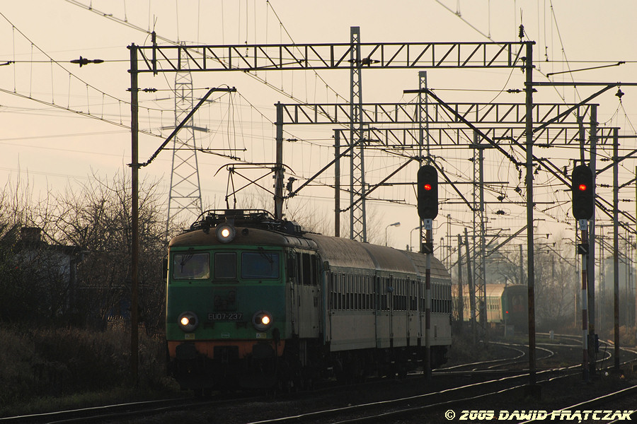 EU07-237 wjeżdża do Wrocławia Zachodniego z pciągiem 6620 z Jeleniej Góry do Wrocławia i dalej Poznania (06.12.2009) |