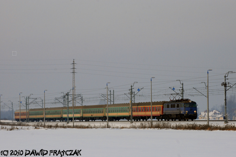 EU07-222 z pociągiem 53108 z Gdyni i Jeleniej Góry do Przemyśla, wyjeżdża ze Świętej Katarzyny (25.01.2010) |