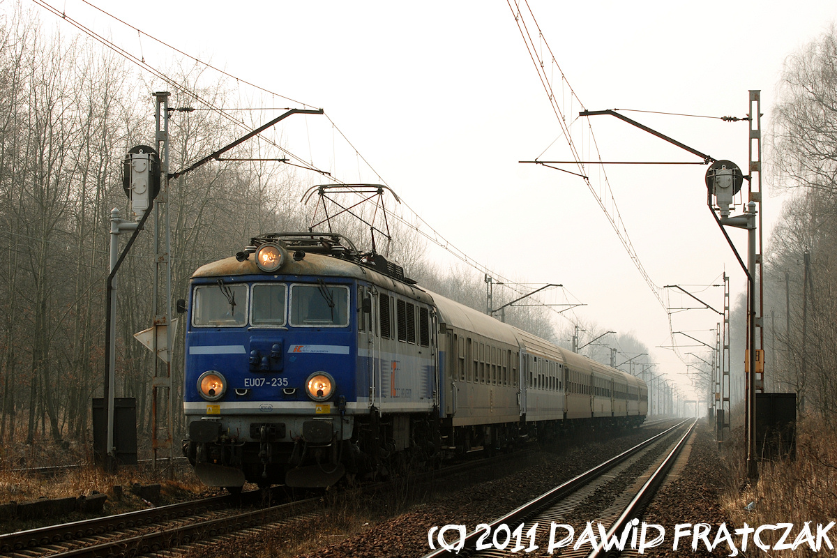 EU07-235 zbliża się do Sławięcic z pociągiem pospiesznym 83100/1 ze Szczecina do Przemyśla (15.03.2011) |