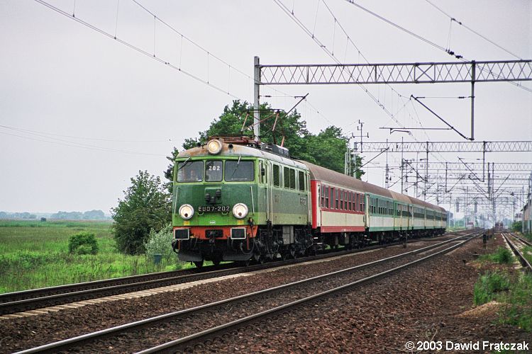 EU07-206 z pospiesznym "Sudety" z Jeleniej Góry do Warszawy Wschodniej przed Wrocławiem Świebodzkim (31.05.2001)