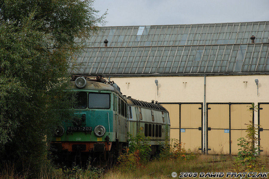 EU07-202 zasila krzaki w lokomotywowni Wrocław Brochów (11.10.2009) |