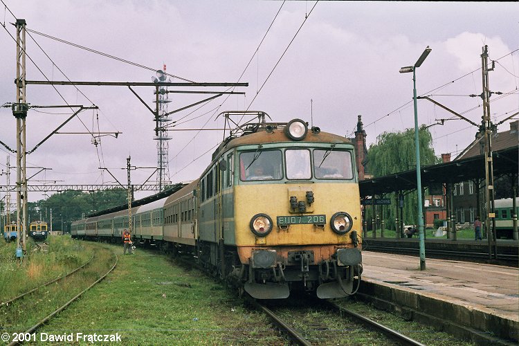 EU07-206 w Opolu Głównym z osobowym 6420 z Jeleniej Góry do Kędzierzyna Koźla (20.07.2001)
