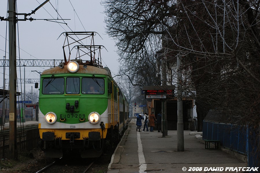 EU07-209 z CM Skarzysko-Kamienna, w obsłudze pociągu 21232 rel. Radom - Warszawa Wschodnia, przed odjazdem ze stacji początkowej (13.12.2008) |
