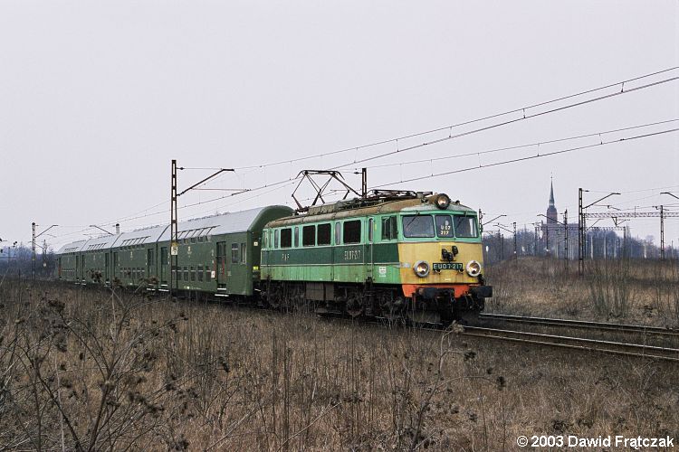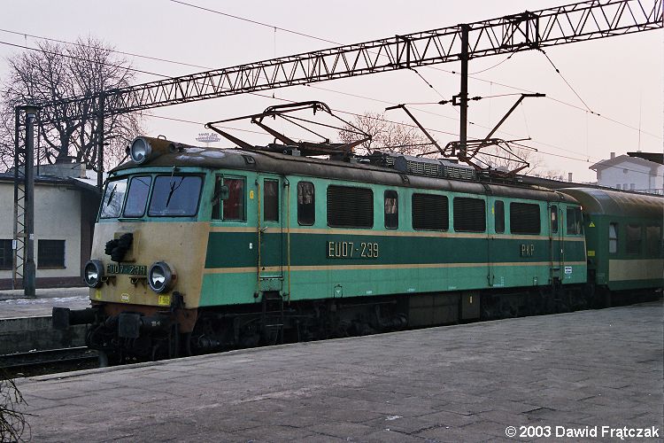 EU07-239 w Oleśnicy z osobowym 67533/2 do Ostrowa Wielkopolskiego (28.02.2003)