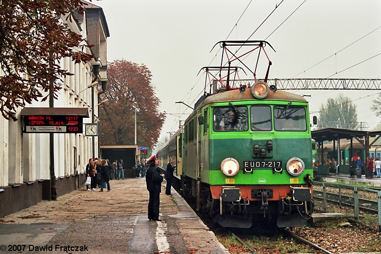 EU07-217 podczas postoju w Radomiu z pociągiem 53101 "Warmia" z Olsztyna do Krakowa Płaszowa (10.2007) |