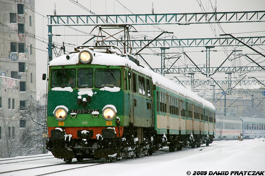 EU07-225 z pociągiem osobowym pomiędzy Wrocławiem Głównym a podg Grabiszyn (20.02.2009)