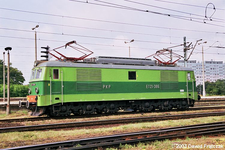 ET21-386 oczekuje na swój pociąg na stacji Wrocław Główny (13.06.2003) |