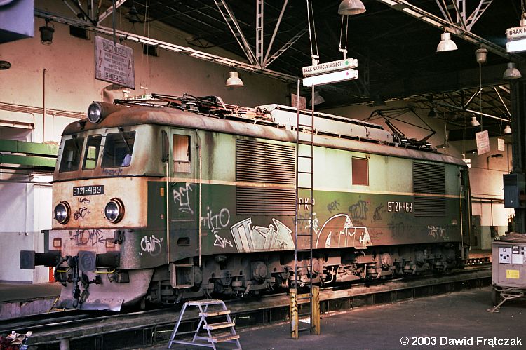 ET21-463 w hali lokomotywowni Wrocław Brochów (17.06.2003) |