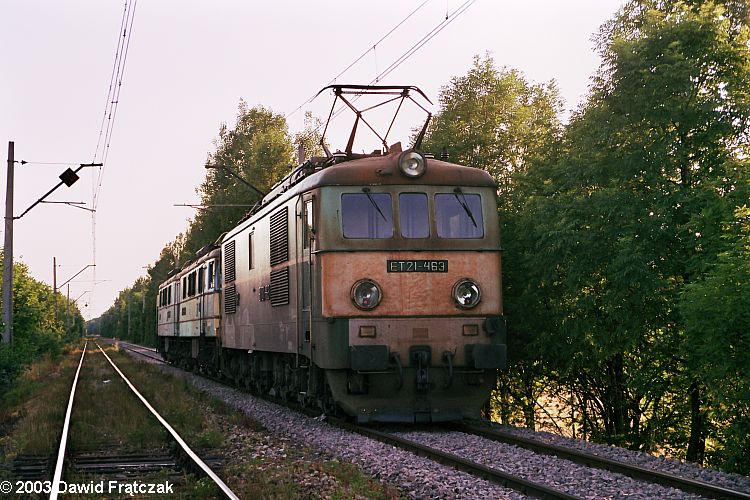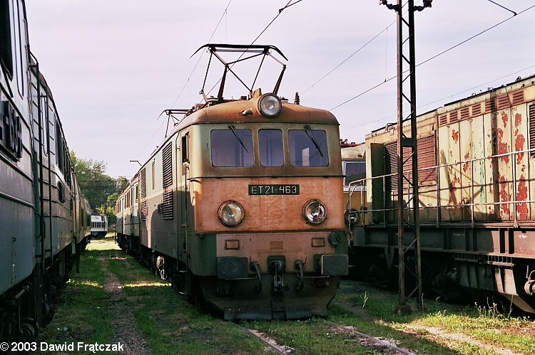 ET21-463 przed lokomotywownią Brochów, razem z ET41-058, odjedzie luzem 11273 do Jaworzyny Śląskiej (17.06.2003) |
