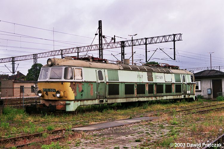 ET22-504 w fatalnym stanie, dosłownie rzucona w kąt lokomotywowni Szczecinek (21.06.2003) |