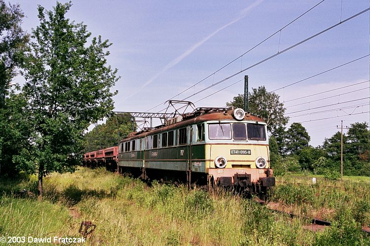 ET41-095 wjeżdża do Wrocławia Zachodniego z pociągiem w kierunku Jaworzyny Śląskiej (10.06.2003) |