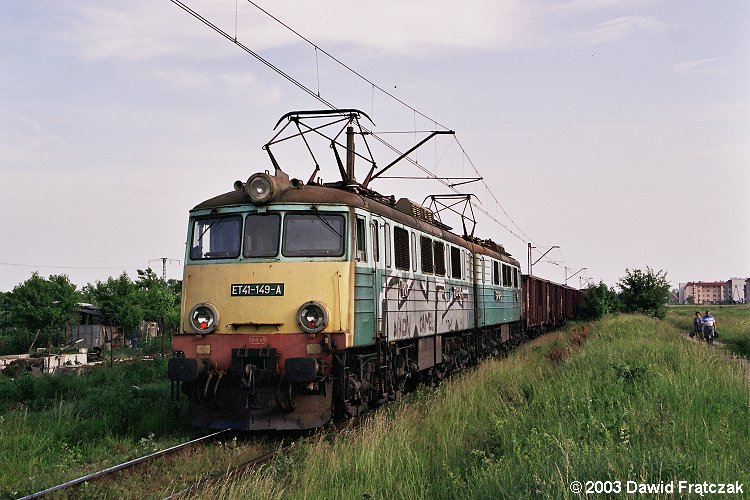 ET41-149 doczepiona na tył pociągu towarowego, na szlaku Wrocław Zachodni - Wrocław Gądów (31.05.2003) |