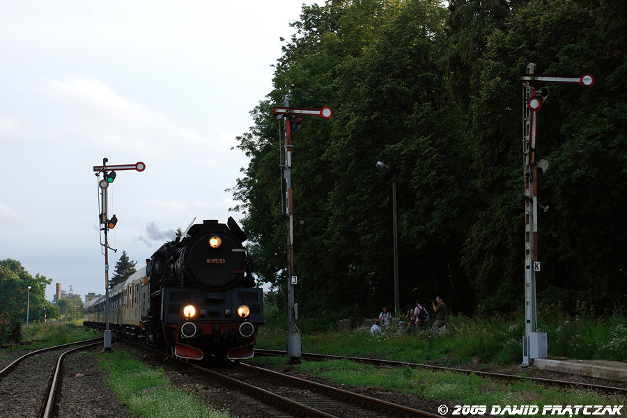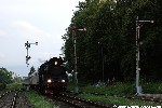 Ol49-59 wjeżdża do Lipki Krajeńskiej jako pociąg specjalny 78508 "Bluess Express" z Poznania Głównego (18.07.2009) |