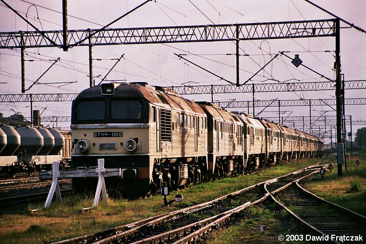 ST44-1060 odstawiony w rzędzie innych maszyn w Szczecinku (21.06.2003) |