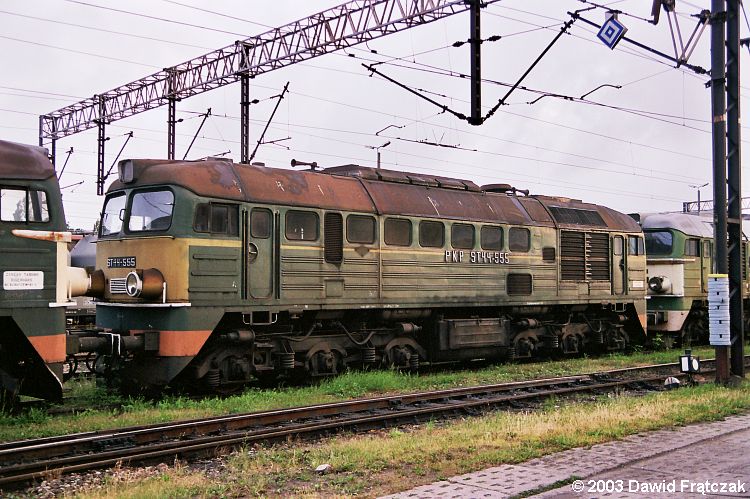 ST44-555 odstawiony w rzędzie innych maszyn w Szczecinku (21.06.2003) |