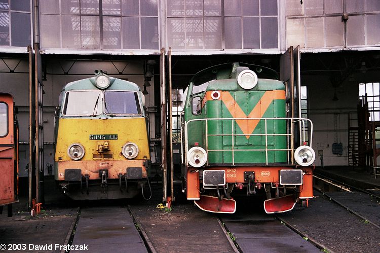 SU45-106 w lokomotywowni Szczecinek; obok - SP42-093 (21.06.2003) |