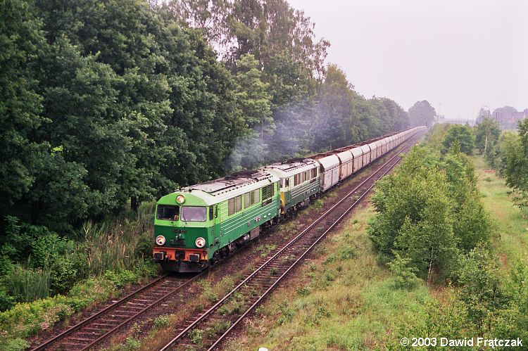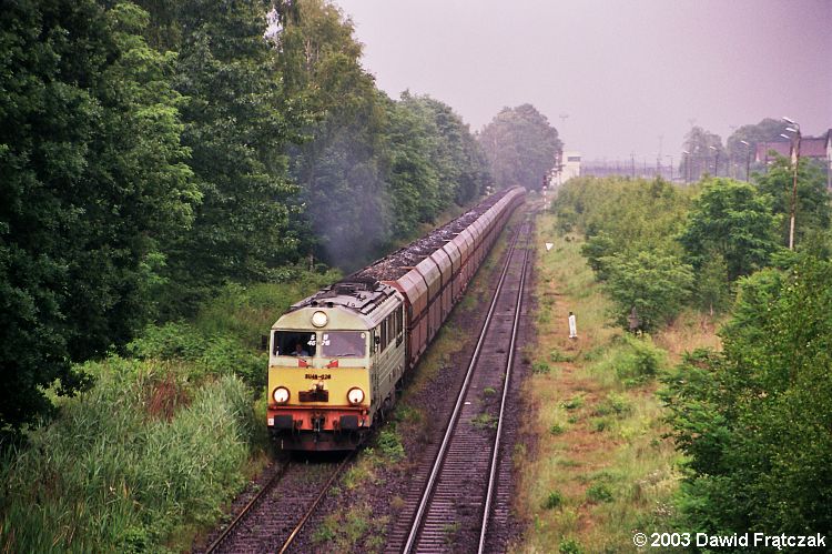 SU46-026 opuszcza Węgliniec z talbotami wypełnionymi koksem - kierunek Horka (19.06.2003) |