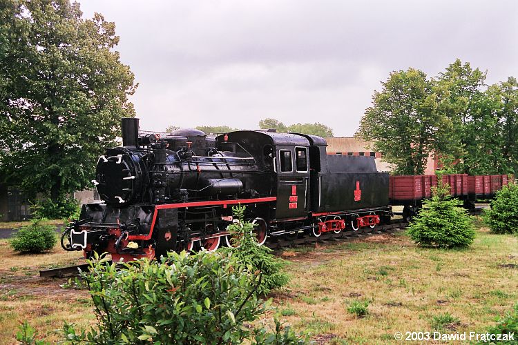 Px48-3908 jako pomnik, nieopodal lokomotywowni Szczecinek. W 1989 roku został przywieziony z Koszalina Wąsk. (21.06.2003) |